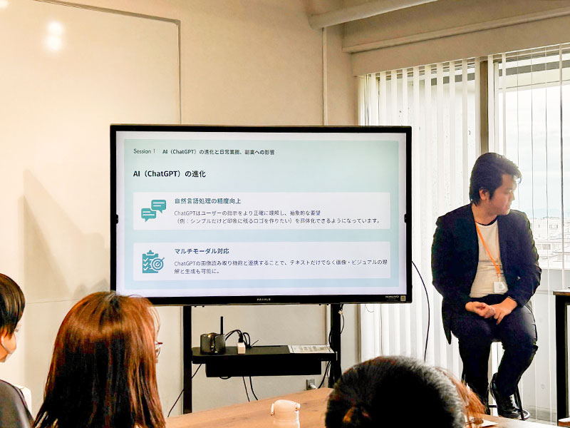 「AIは敵ではなく、考える時間を減らしてくれる相棒」と語る髙國さんは、ChatGPTや画像生成AIなどの活用例を交えながら、未経験者でもデザイン業務に取り組める未来を丁寧に解説してくれました。