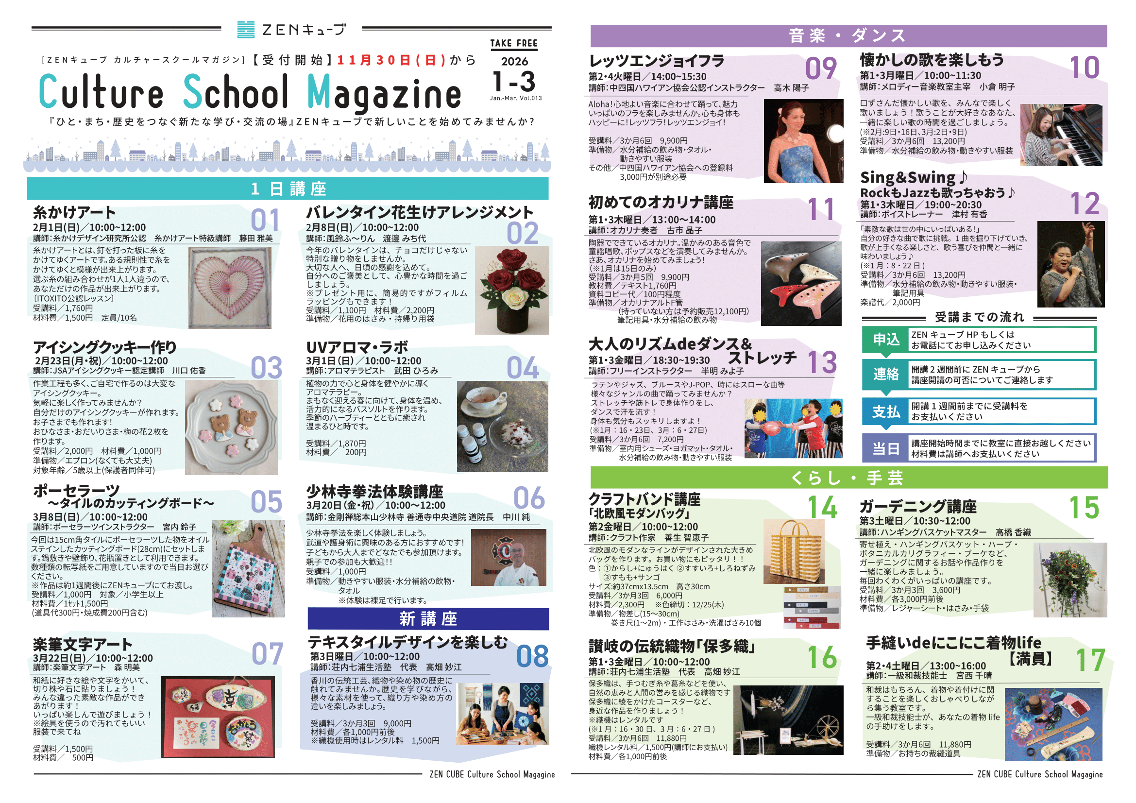●受講料は、前納していただきます。ほとんどの講座は継続しており、ほとんどの講座は途中からでも受講できます。
